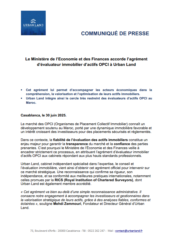 Urban Land est un cabinet de conseil en immobilier basé à Casablanca, reconnu pour son expertise de haut niveau et son engagement envers les standards internationaux.